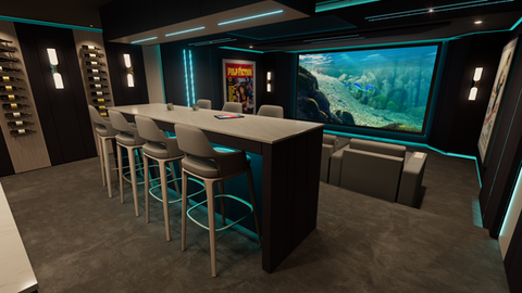 The sit-at bar for seven people creates an inviting space for socialising, making it the perfect setting for everything from casual drinks to lively gatherings.